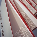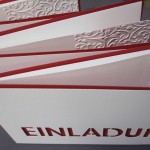 Die Signalfarbe ROT mit CREME ist eine neutrale und edle Kombination für Einladungskarten. Der Scherenschnitt, in Verbindung mit einer Prägung veredelt die Karte. Sie ist in vielen Farbkombinationen erhältlich.