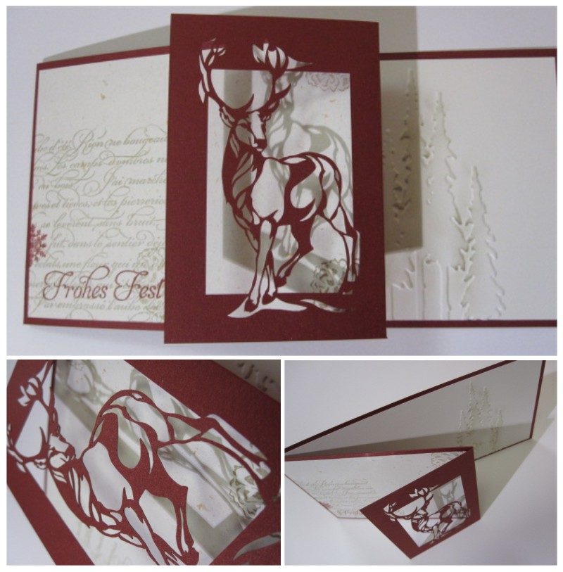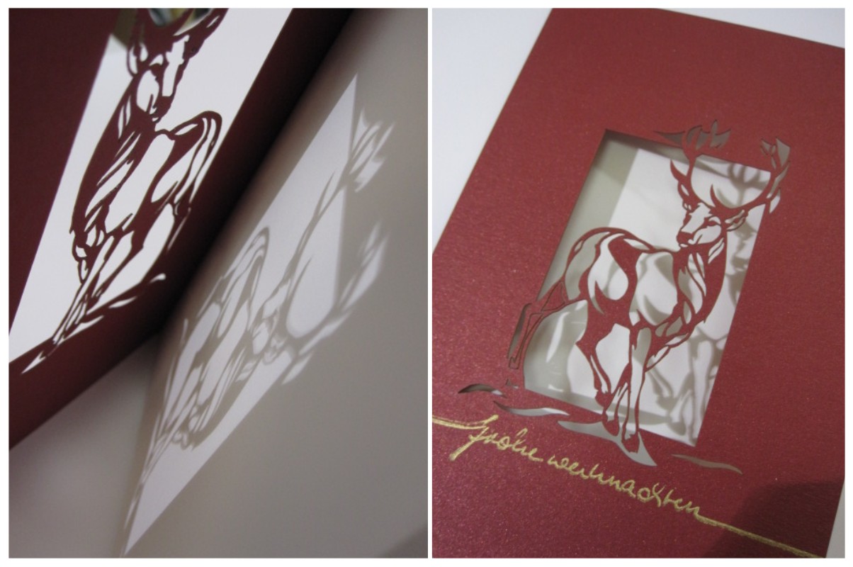Mein Favorit in diesem Jahr ist das Hirschmotiv. Früher hatte ich ihn häfig als Scherenschnitt gewerkelt. Nun hab ich ihn überarbeitet und schon ist eine ganze Serie enstanden.