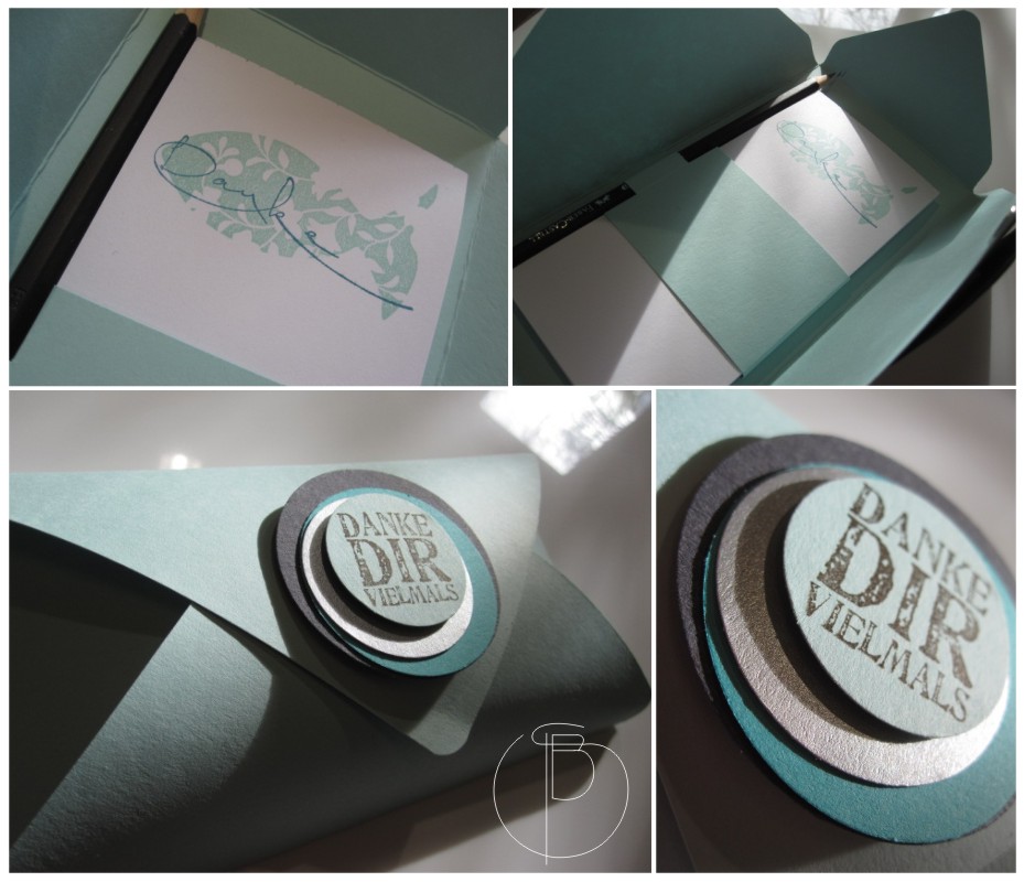 Tischkärtchen geboren. Das Logo führe ich seit 1980 in meiner Keramik als Eindruck, dachte ich führe es auch in meinen Papierwerkeleien ein.