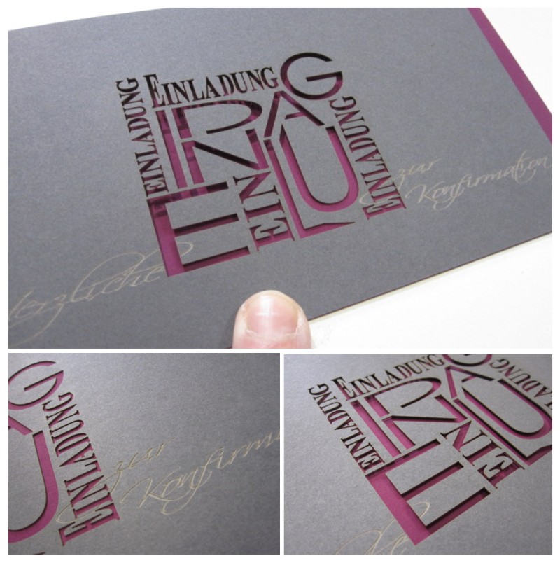 Einfacher anthrazitfarbener Fotokarton mit der schönen Farbe purple von „Zand“ (Artoz). Heide Salfner (Dekostube aus Wattenbach) kann mir meine Entwürfe erfüllen.