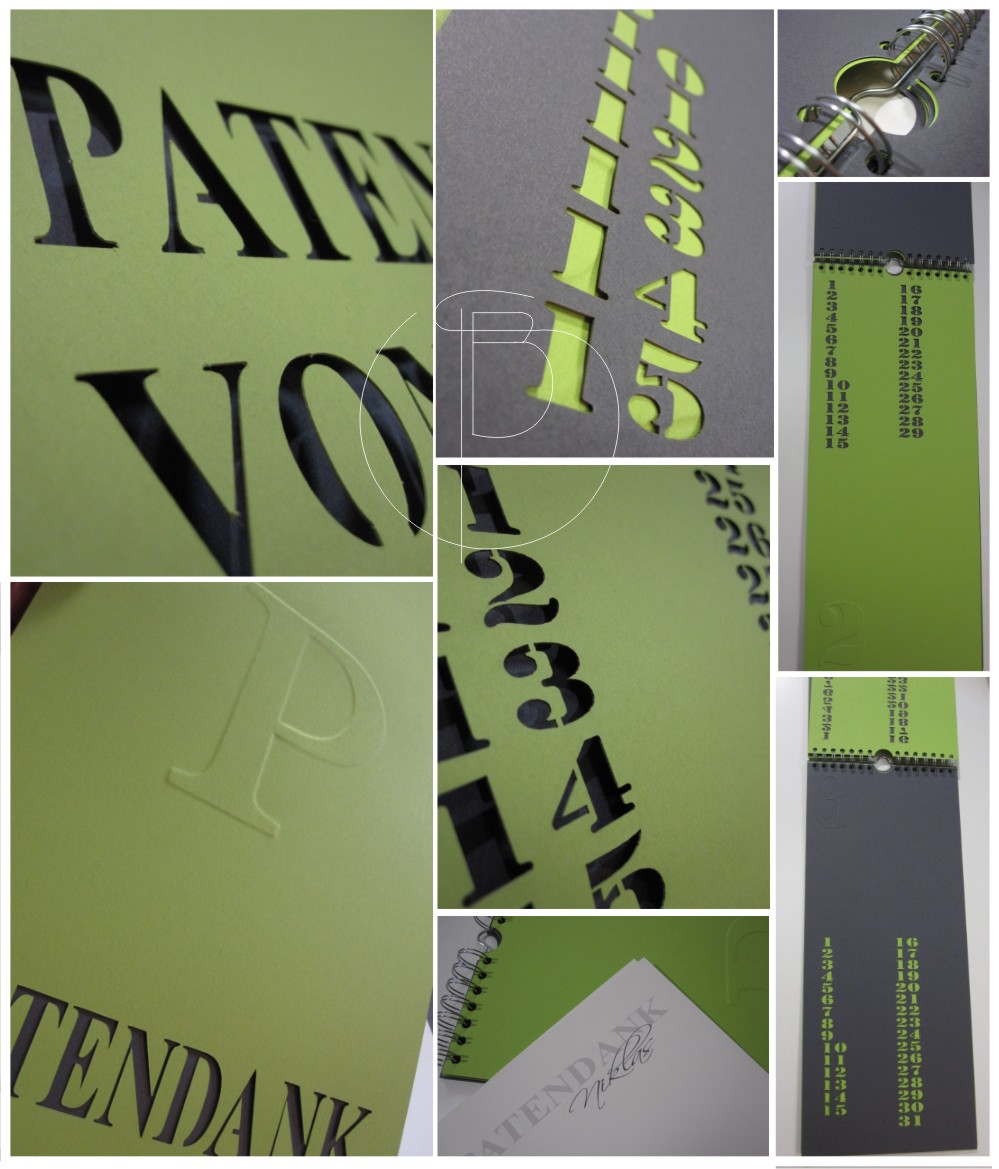 Besonderes Geburtstagskalender als Patendank 26. Mai 2014 / Ein persönlicher Geburtstagskalender, als Patendankgeschenk mit viel Raum zum Selbstgestalten. Die Zahlen sind Durchbrüche, die versetzt angeordnet sind, um die nachfolgenden Gestaltungen durchscheinen zu lassen.