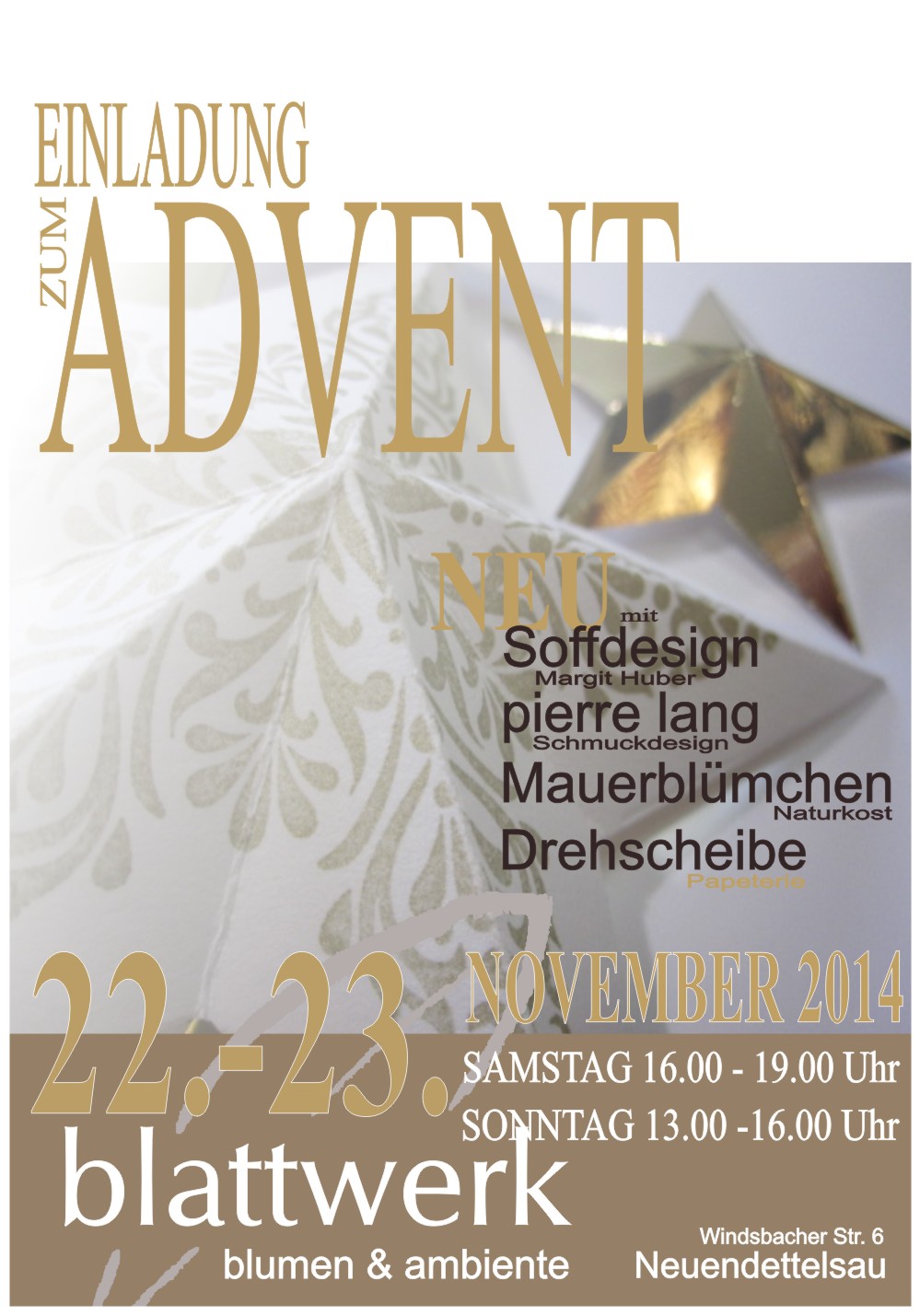 HERZLICHE EINLADUNG ZUR ADVENTSAUSSTELUUNG