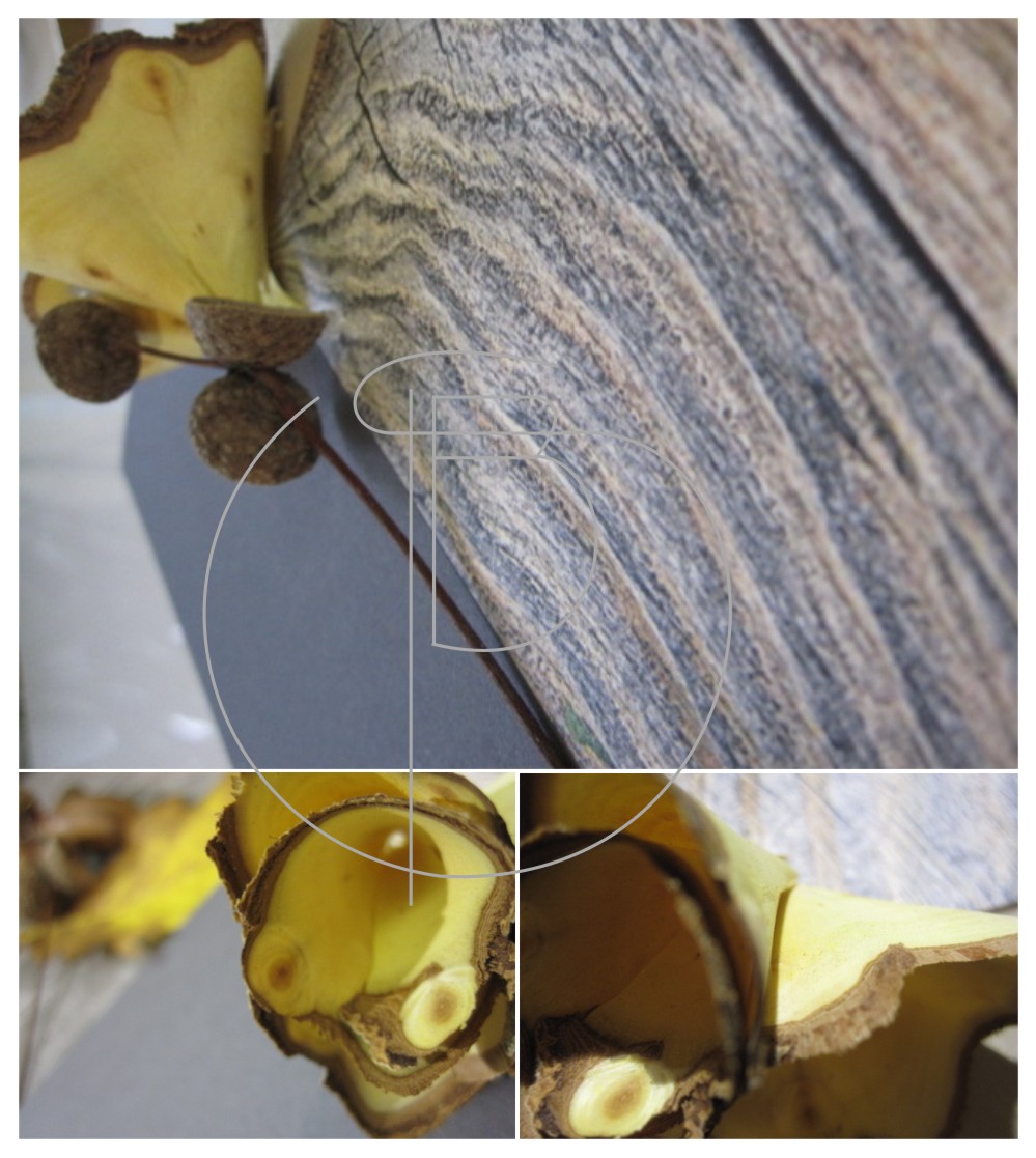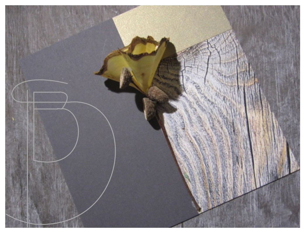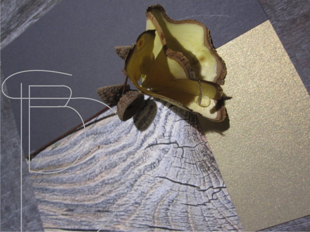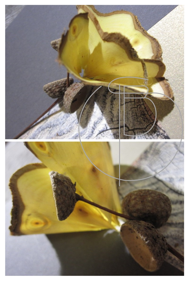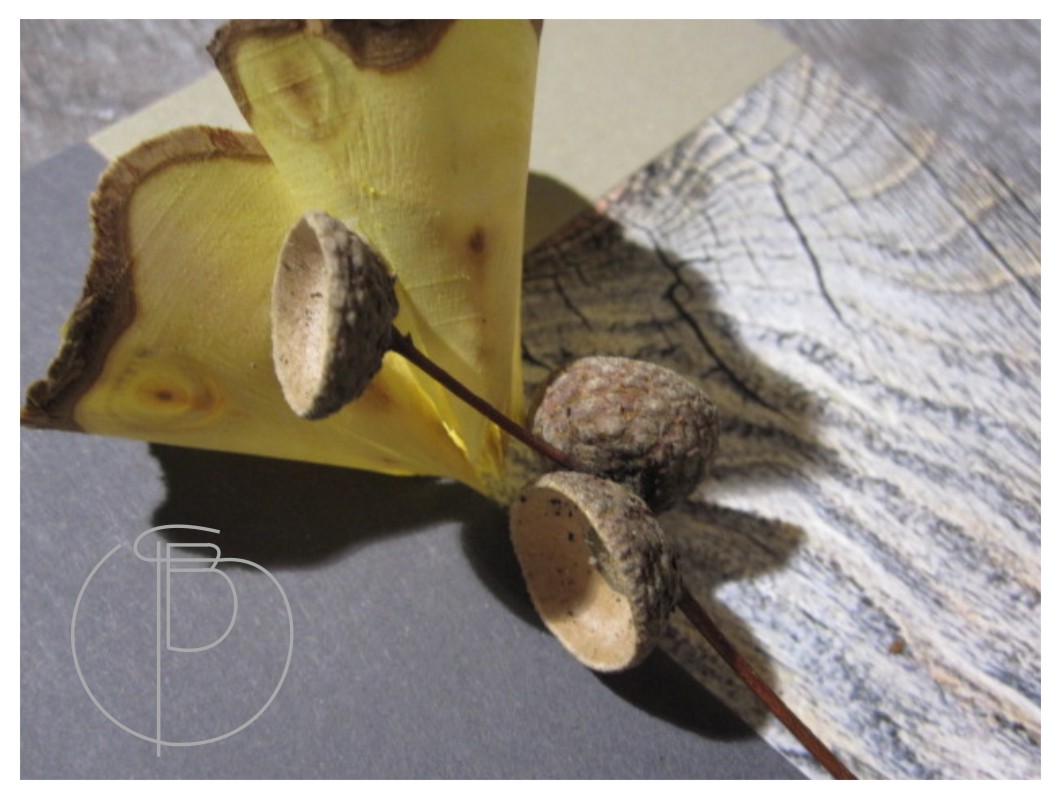 mit Holz und einer Eichelhülle (inspiriert durch Alexandras Eicheln)