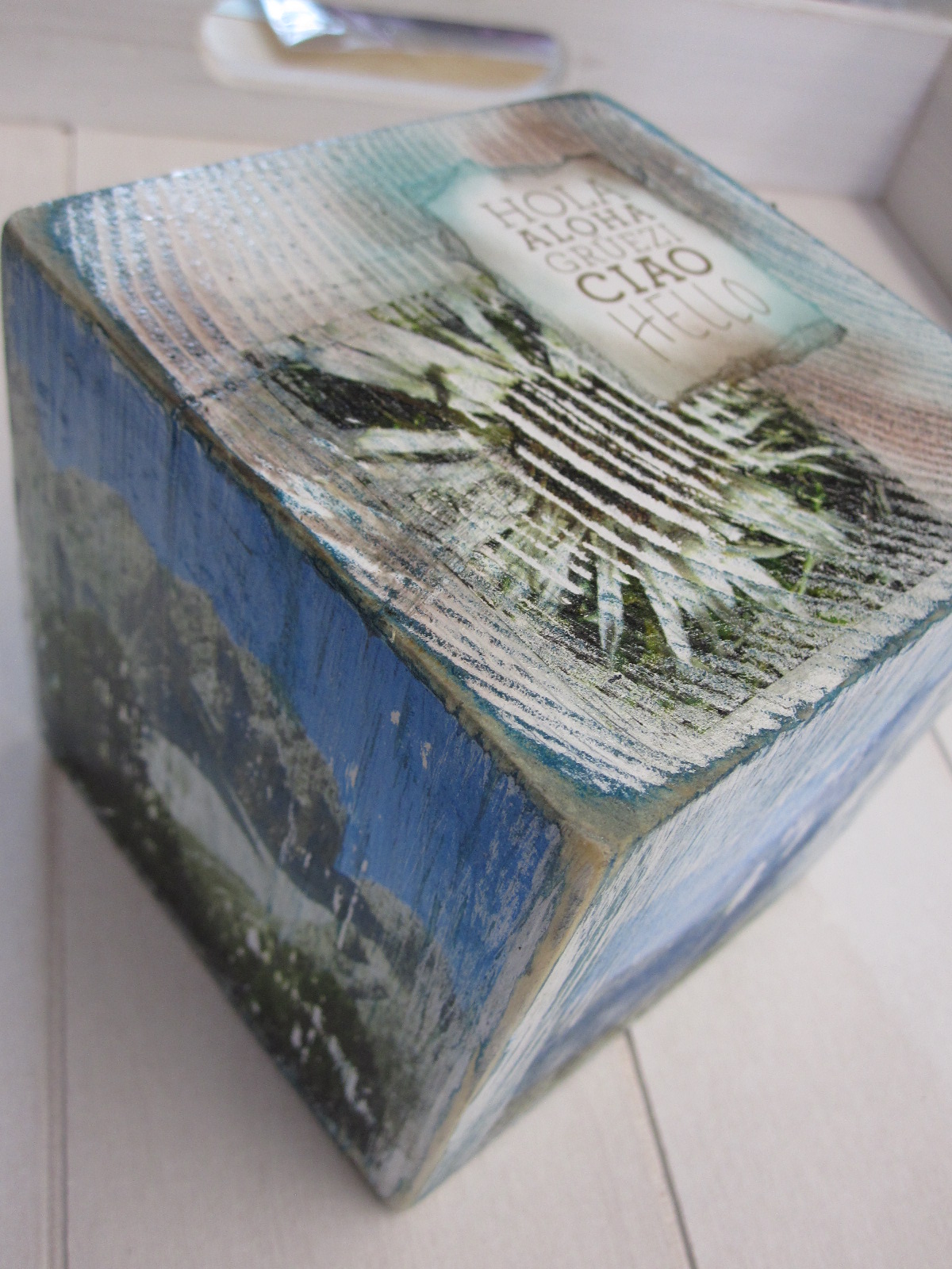 Das Holzbrett ist mit Acrylfarbe gestrichen und nach dem Trocknen