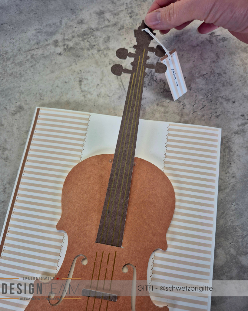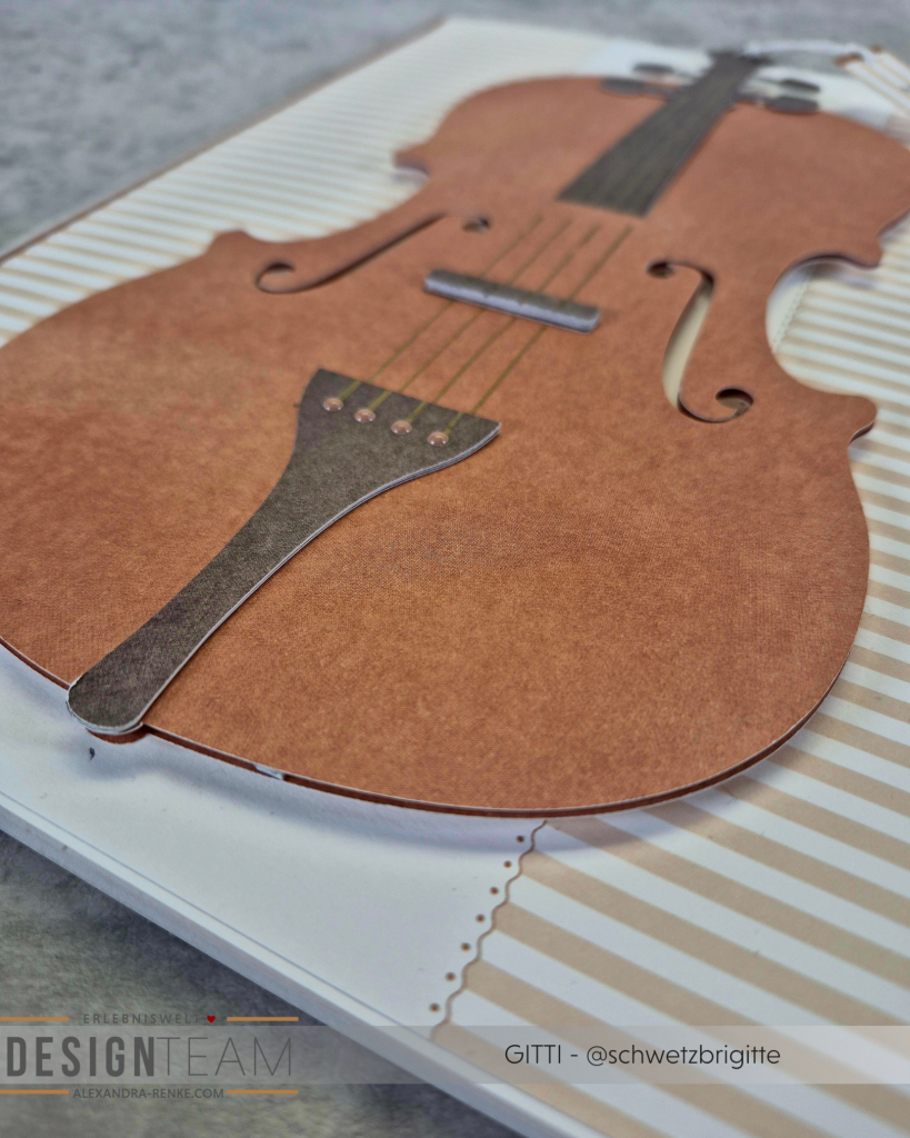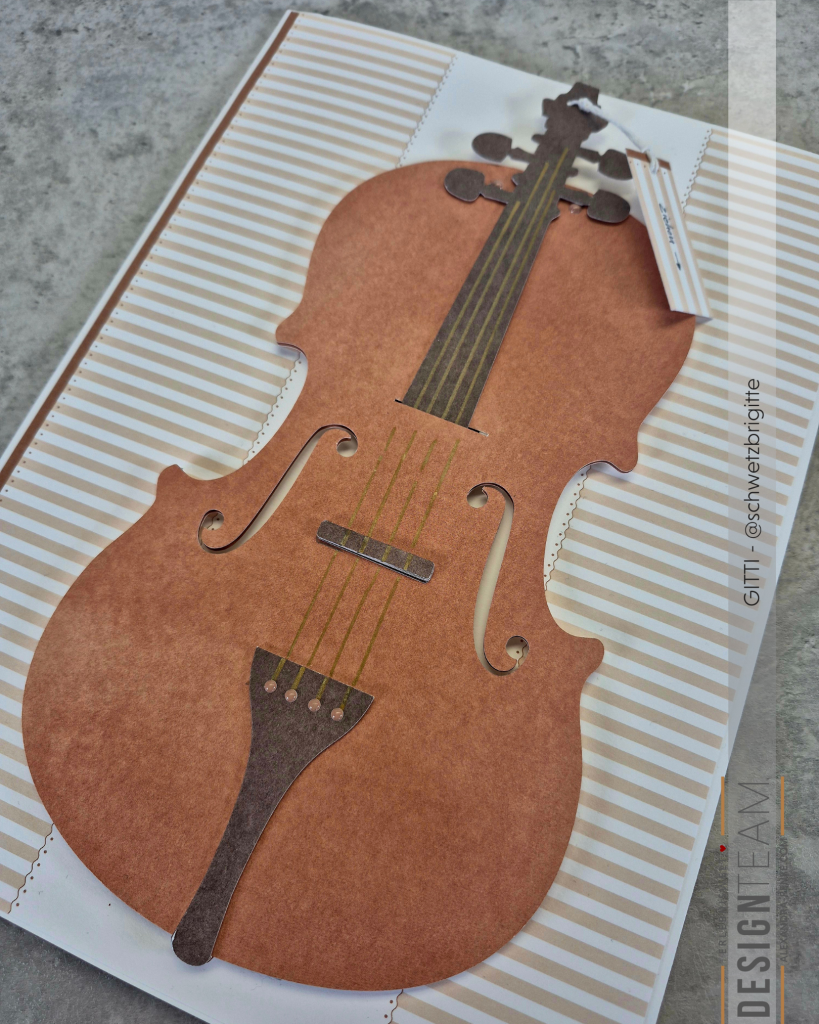 Das Highlight der Karte ist natürlich das wunderschöne Cello, geschnitten mit der Cameo, aus den edlen Papieren von Alexandra Renke. Auch die zarten, gestreiften Hintergründe stammen aus der Erlebniswelt von Alexandra Renke, alles perfekt abgestimmt, harmonisch und stilvoll. ✨
